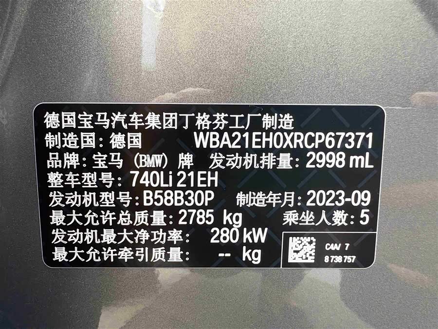Автомобиль BMW Series 7 2023 года производства из Китая, задний привод, пробег 23 000 км, мощность авто 381 л.с..