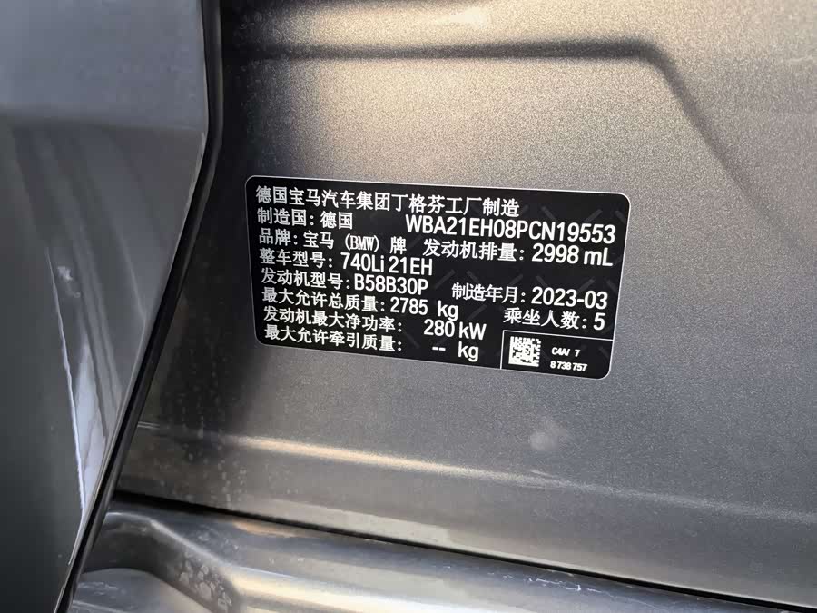 Автомобиль BMW Series 7 2023 года производства из Китая, задний привод, пробег 2 800 км, мощность авто 381 л.с..