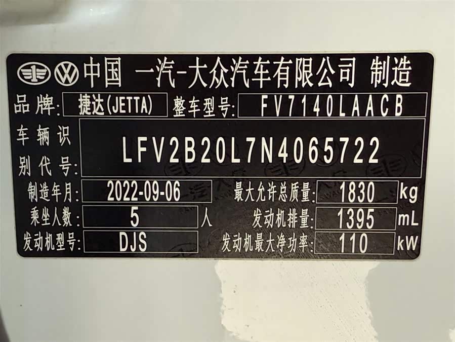 Автомобиль Jetta VS5 2022 года выпуска из Китая, передний привод, пробег 19 000 км, мощность авто 150 л.с..