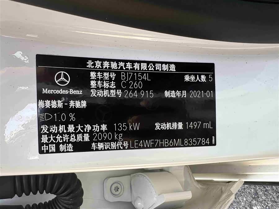 Автомобиль Mercedes-Benz C-Class 2021 года производства из Китая, задний привод, пробег 79 000 км, мощность авто 184 л.с..